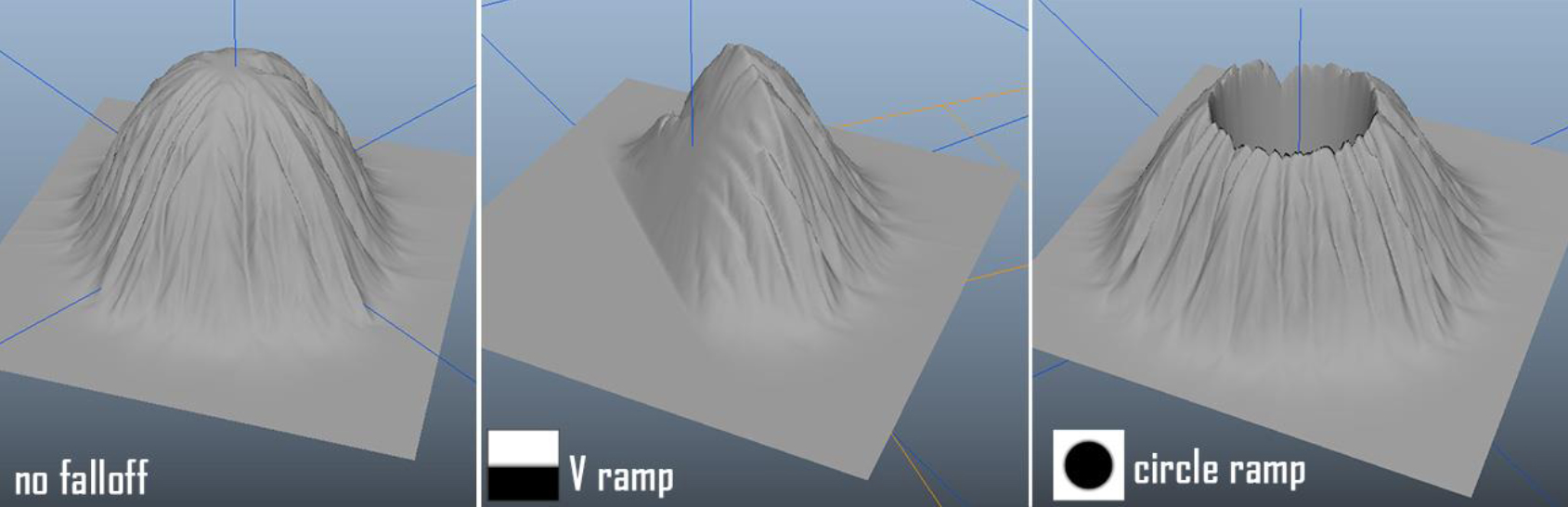 Falloff Falloff With falloff, you can mask a region of terrain with a ramp texture. Falloff handles are usually red ororangeSelect a terrain handle and press the icon from the shelf